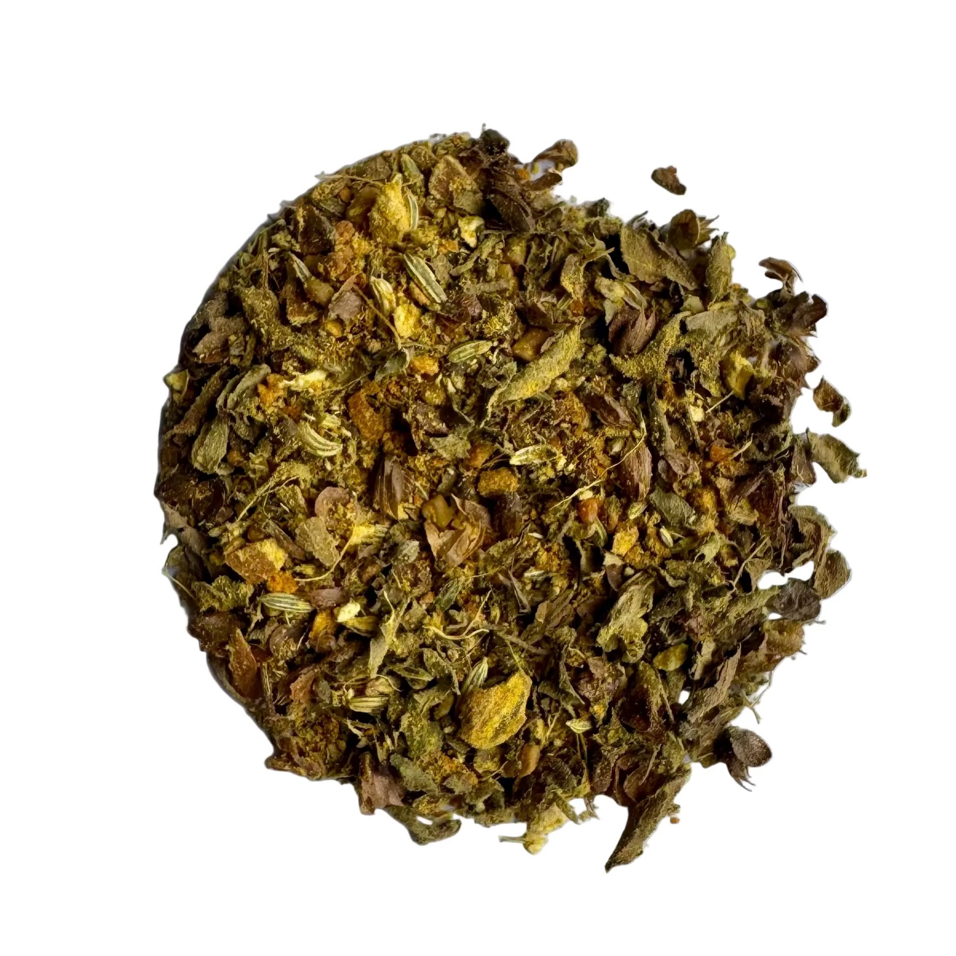 Our hand mix of organic tulsi, turmeric, ginger alongside warm spices fenugreek, fennel, cinnamon, black pepper. This is an ancient Ayurvedic remedy for anytime boost for hydration, immunity, anti-anxiety.